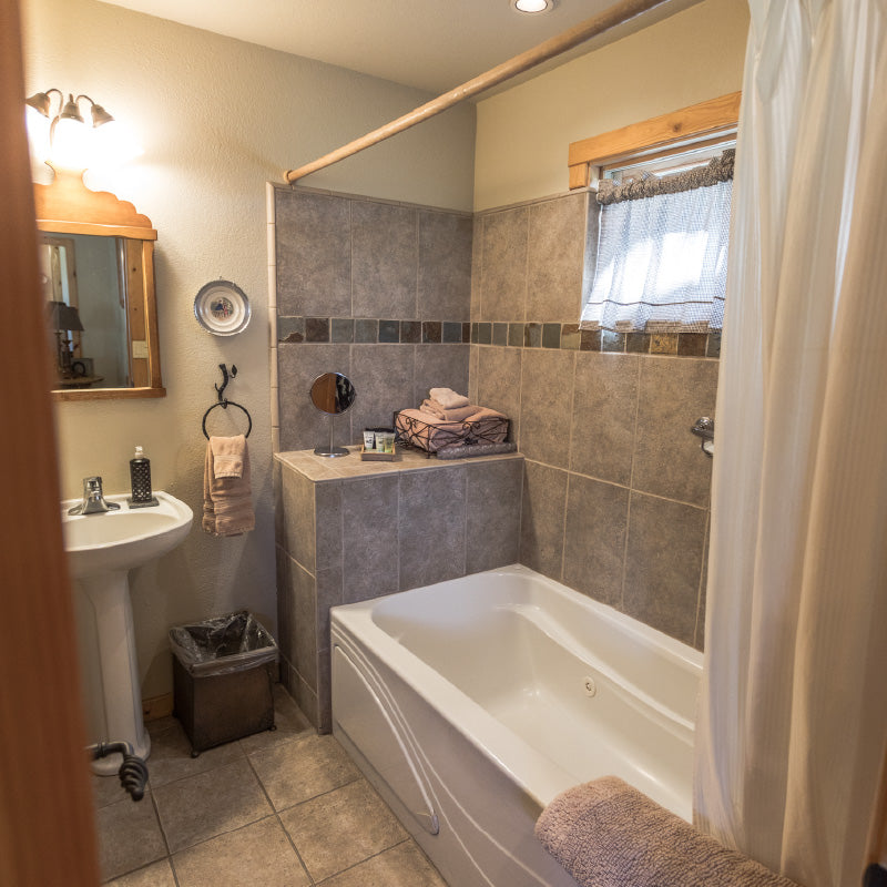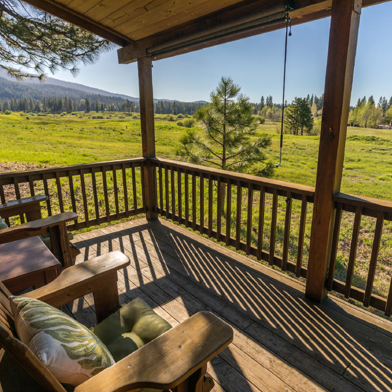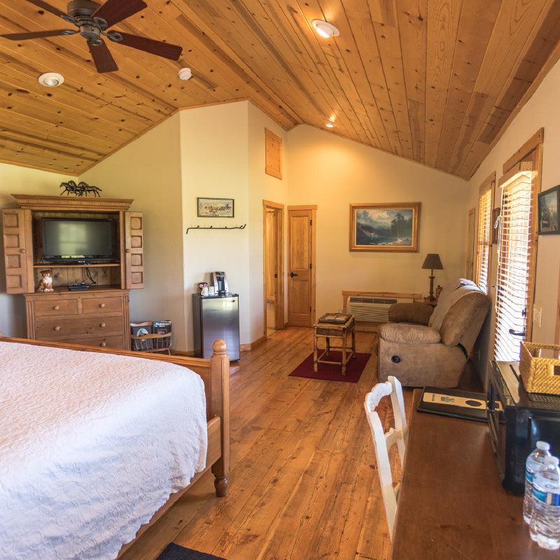 Appaloosa is a luxury one room cabin with a meadow view, king bed and jaccuzzi tub.