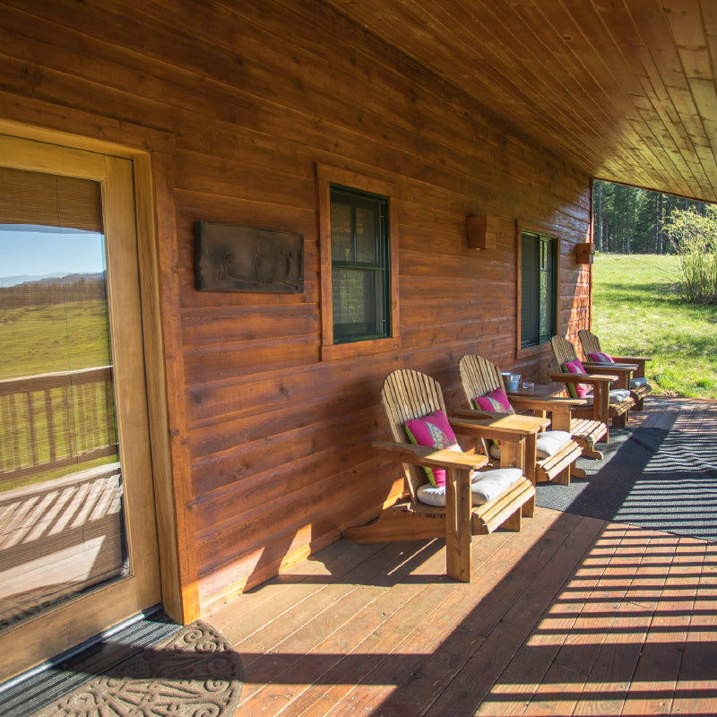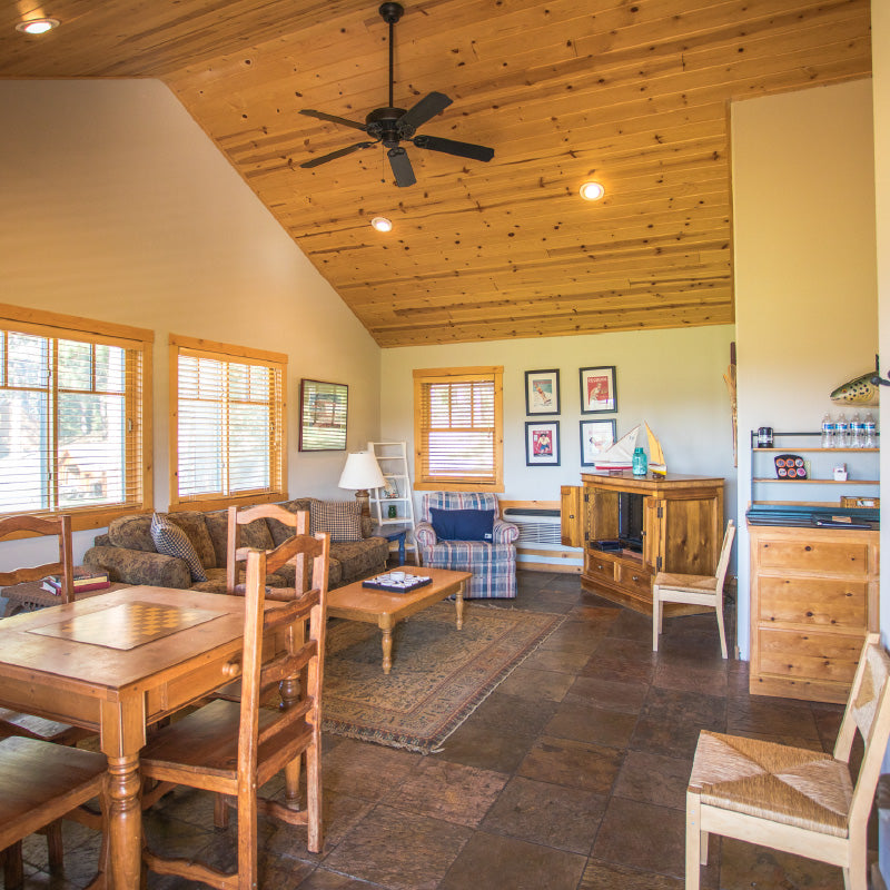 Friesian is a two bedroom, two bath cabin with a meadow view. This cabin has a queen bed in each room and a lovely living room area.