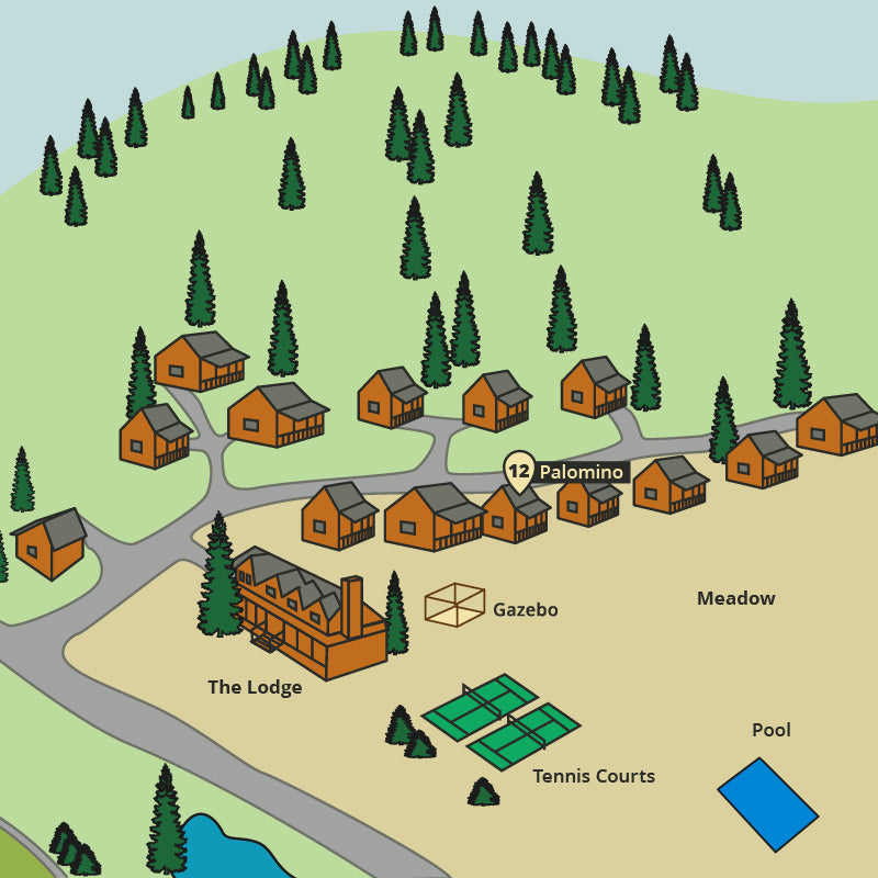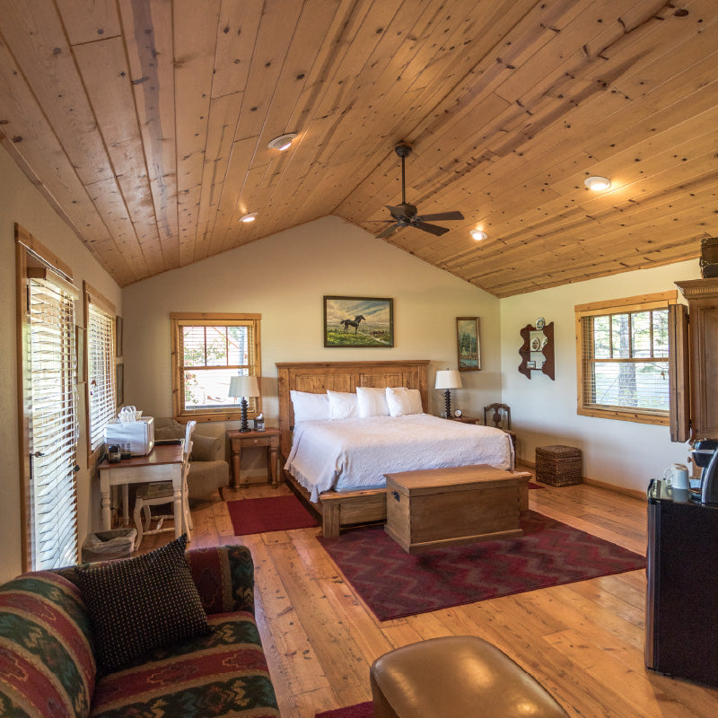 Palomino is a luxury one room cabin with a meadow view, King bed and jaccuzzi tub.